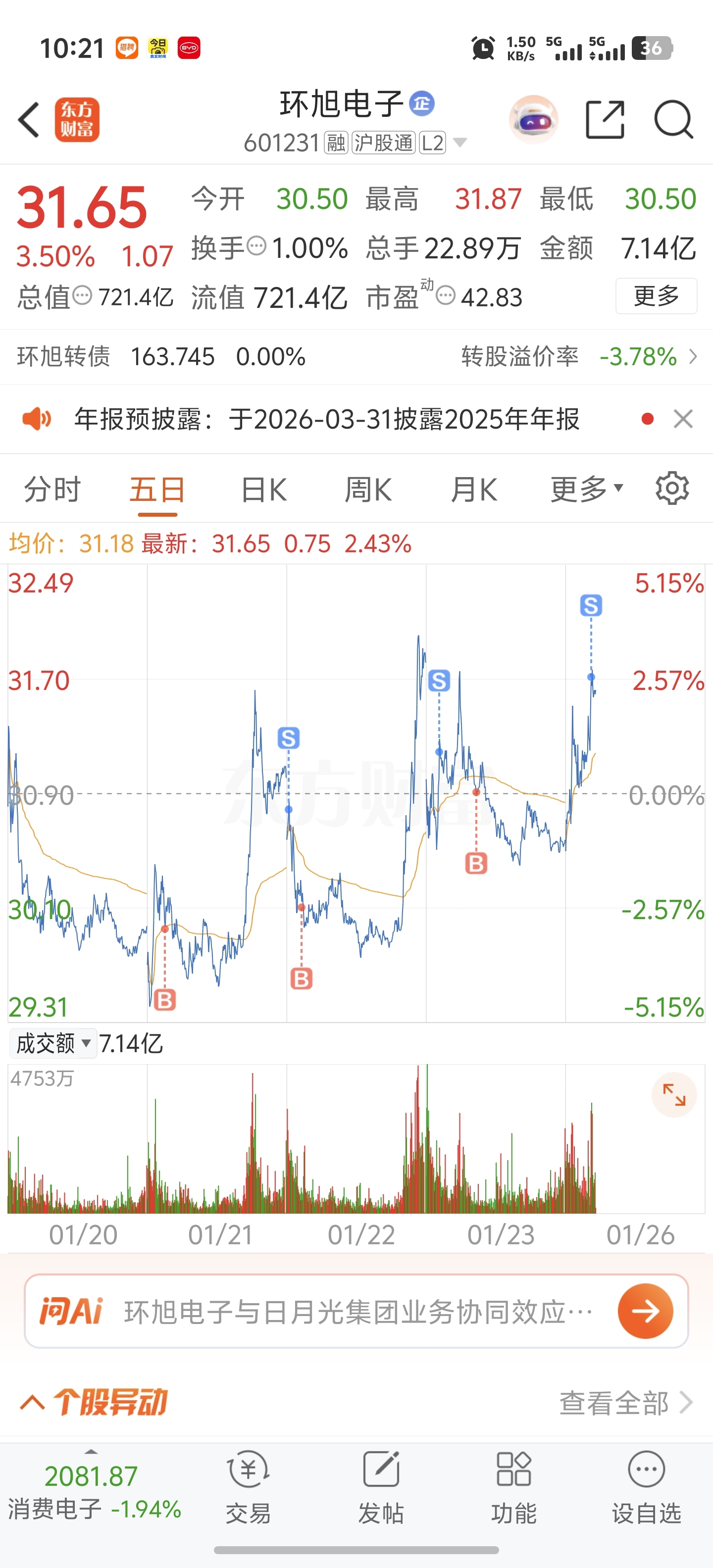 $环旭电子(SH601231)$ 我不贪,走了