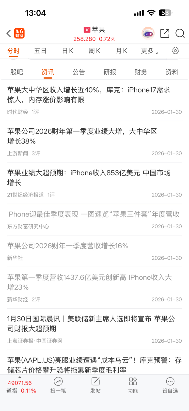 苹果公司一季度业绩大增!创史上最好业绩!苹果股价今晚一定大涨!
