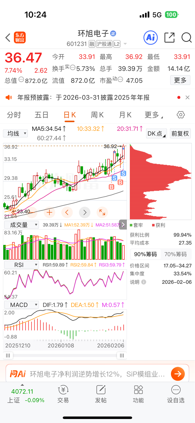 $环旭电子(SH601231)$ 先离开一下,过两天再接你
