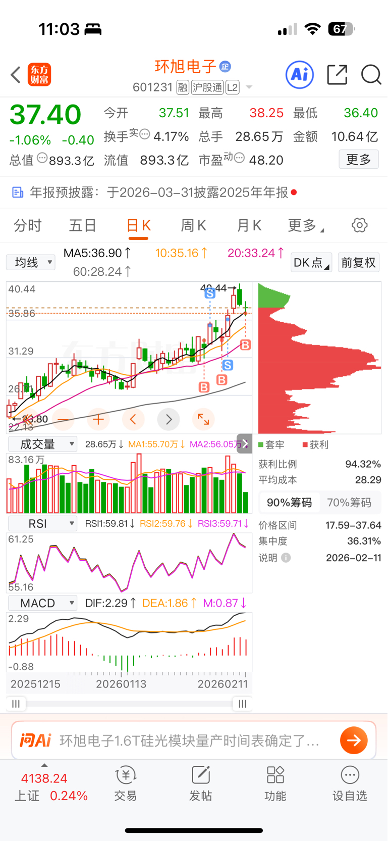 $环旭电子(SH601231)$ 我买少了 你还下来吗