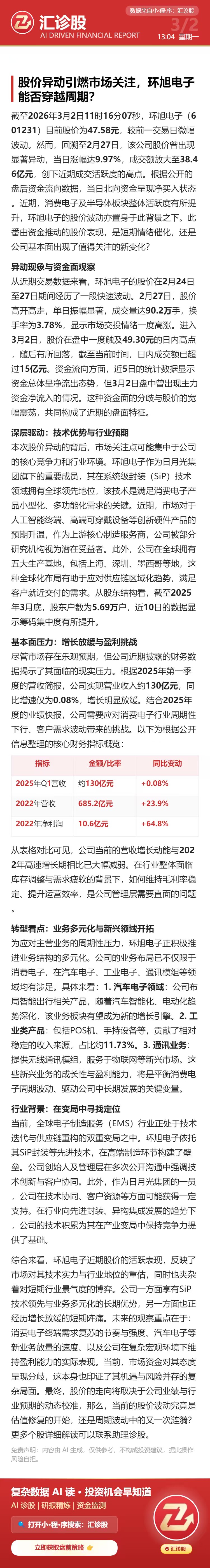 股价异动引燃市场关注,环旭电子能否穿越周期?