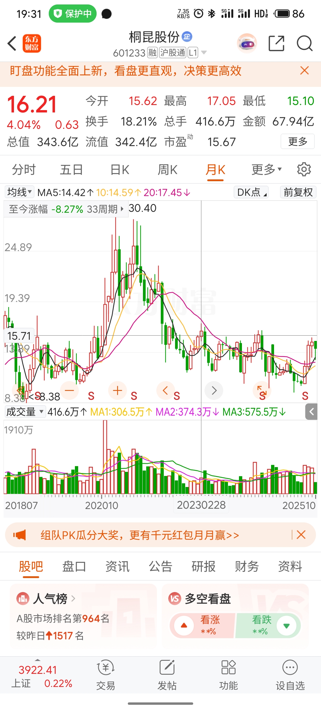 $桐昆股份(SH601233)$ 突破17.05才算彻底出坑,三季度报+原油暴涨行情叠加极有可能近一年的高点了,这次要是上不去,各位真的可以考虑留着传宗接代了