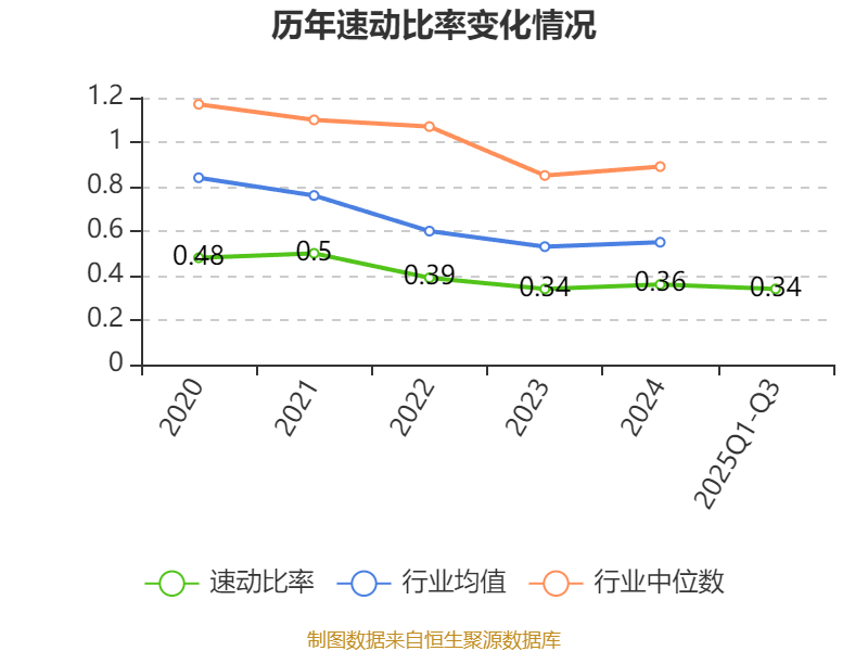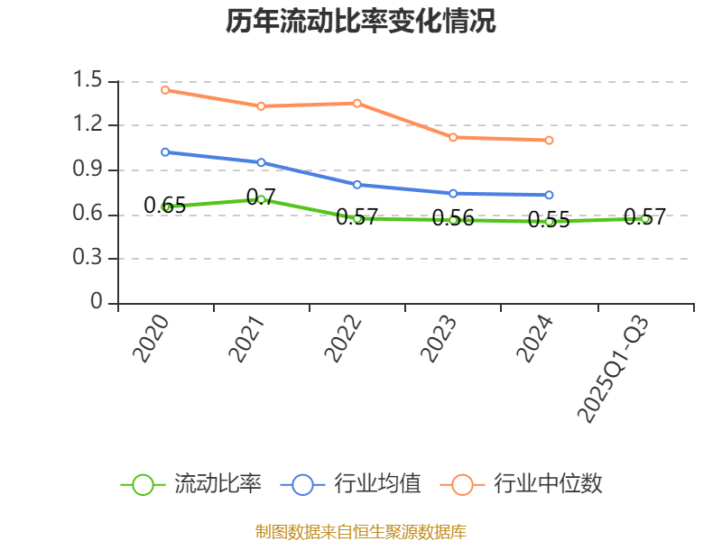 2025年前三季度,公司流动比率为0.57,速动比率为0.34。