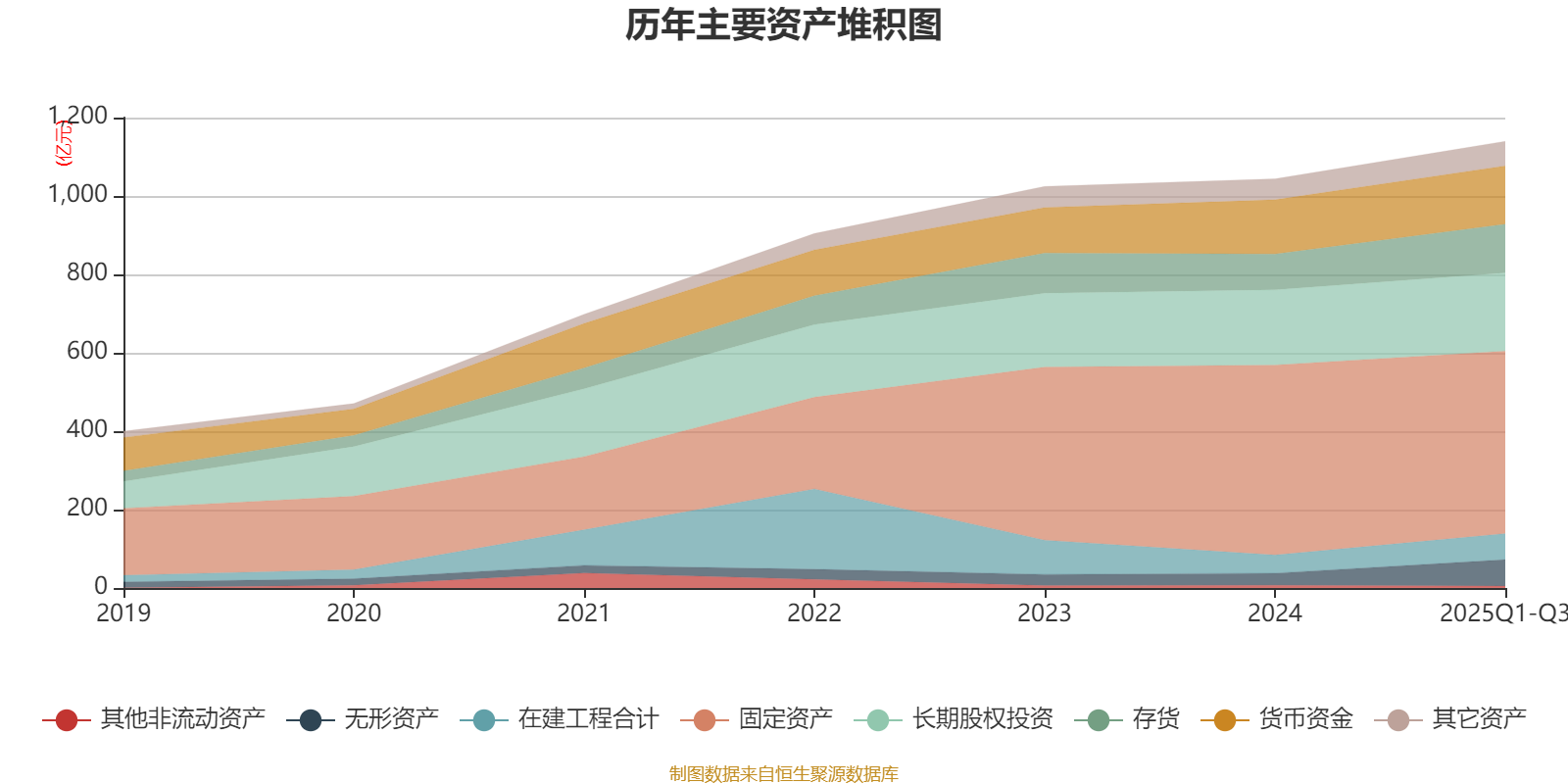 资产重大变化方面,截至2025年三季度末,公司固定资产较上年末减少3.87%,占公司总资产比重下降5.55个百分点;无形资产较上年末增加119.48%,占公司总资产比重上升2.98个百分点;存货较上年末增加35.6%,占公司总资产比重上升2.13个百分点;在建工程合计较上年末增加42.79%,占公司总资产比重上升1.37个百分点。