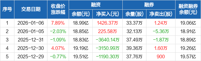 桐昆股份:融资净买入1426.37万元,融资余额18.99亿元(01-06)