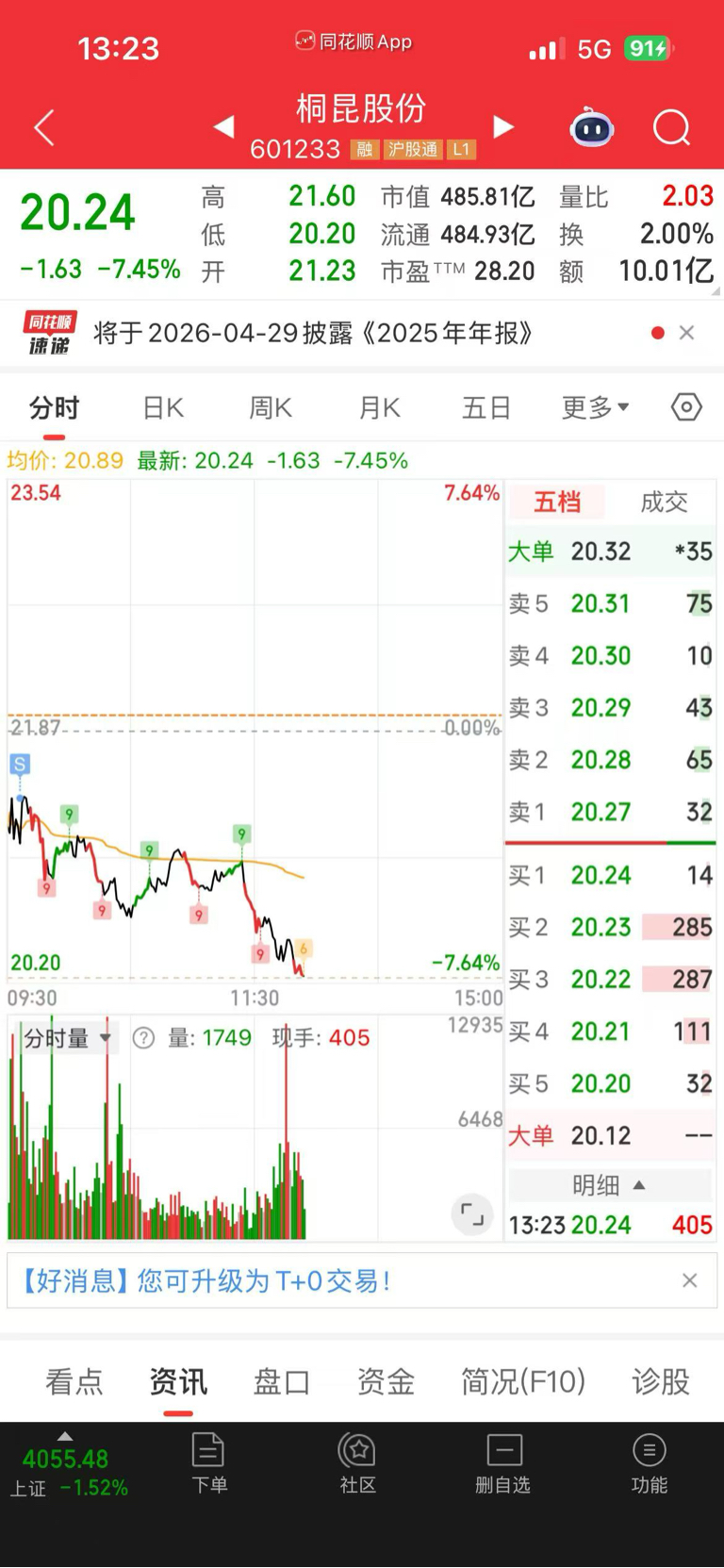 $桐昆股份(SH601233)$ 开盘看不对劲儿,赶紧21.55出来避一避