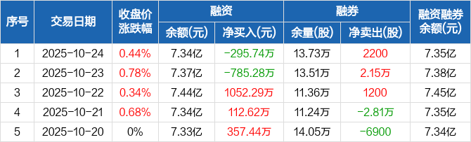 红塔证券:融资净偿还295.74万元,融资余额7.34亿元(10-24)