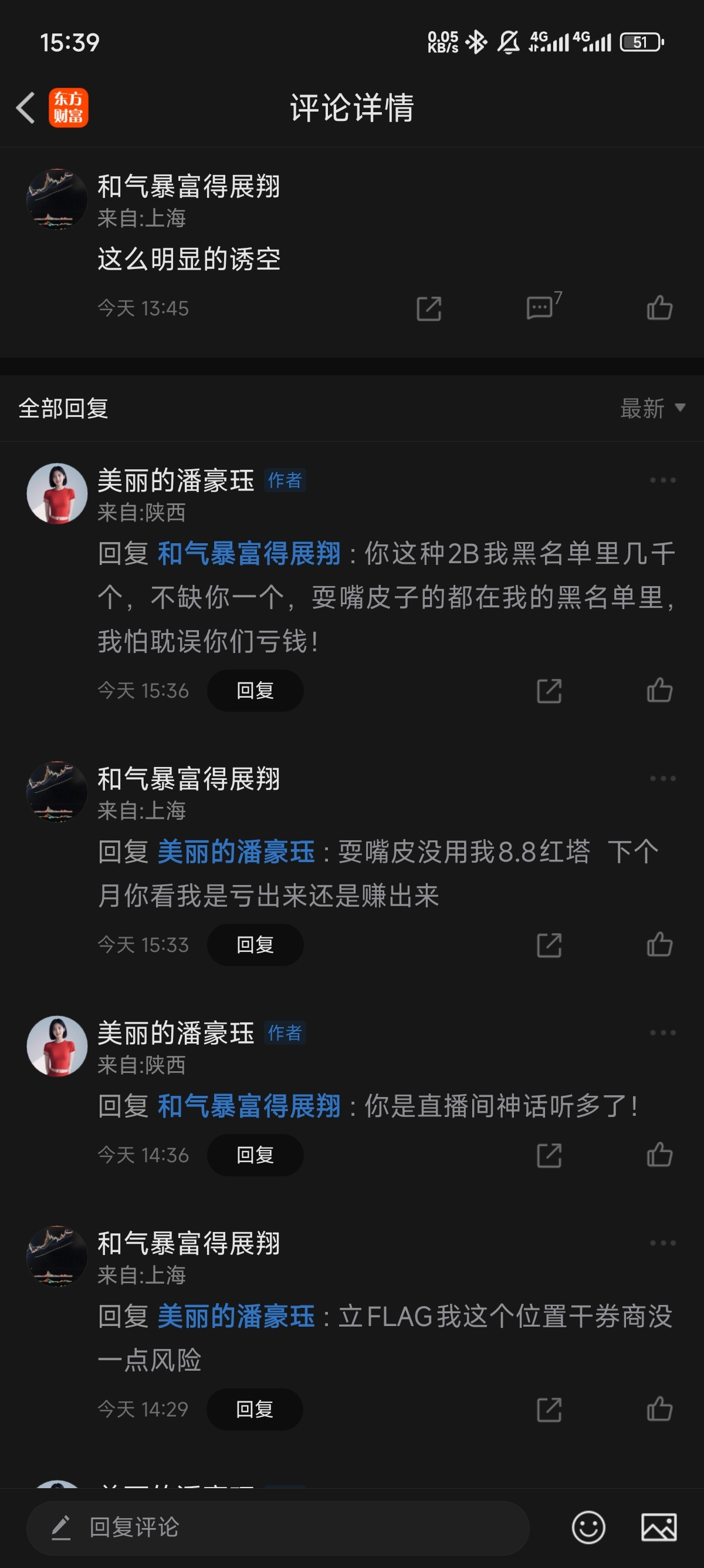 郑重声明:用户在财富号/股吧/博客等社区发表的所有信息(包括但不限于文字、视频、音频、数据及图表)仅代表个人观点,与本网站立场无关,不对您构成任何投资建议,据此操作风险自担。请勿相信代客理财、免费荐股和炒股培训等宣传内容,远离非法证券活动。请勿添加发言用户的手机号码、公众号、微博、微信及QQ等信息,谨防上当受骗!