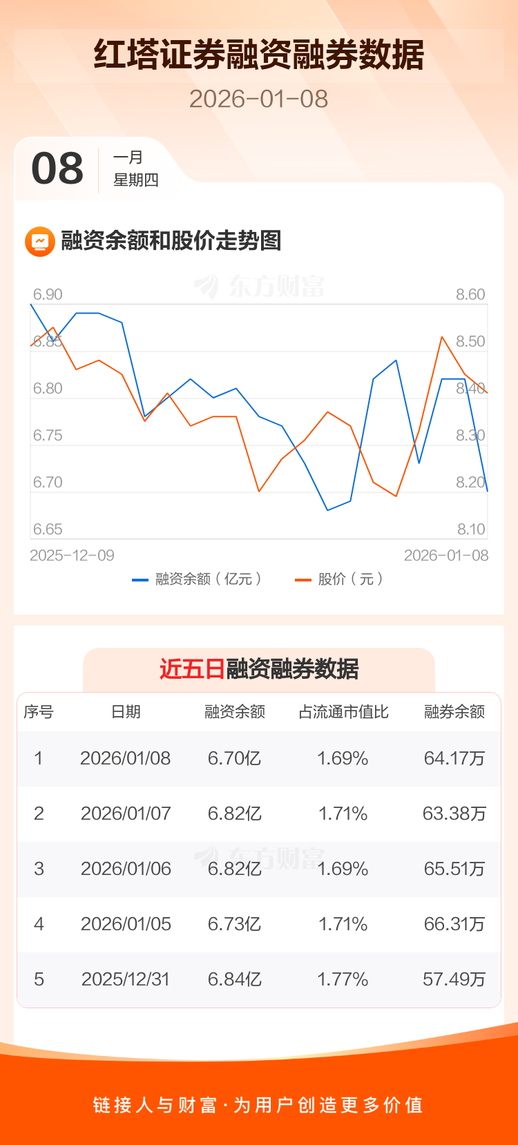 交易所最新数据显示,红塔证券于2026年1月8日获融资买入2070.88万元,融资偿还3277.00万元,当日融资净偿还1206.12万元。目前,该股融资余额6.70亿,占流通市值比例为1.69%。
