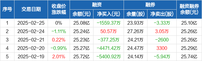 广汽集团:融资净偿还1559.37万元,融资余额25.08亿元(02-25)