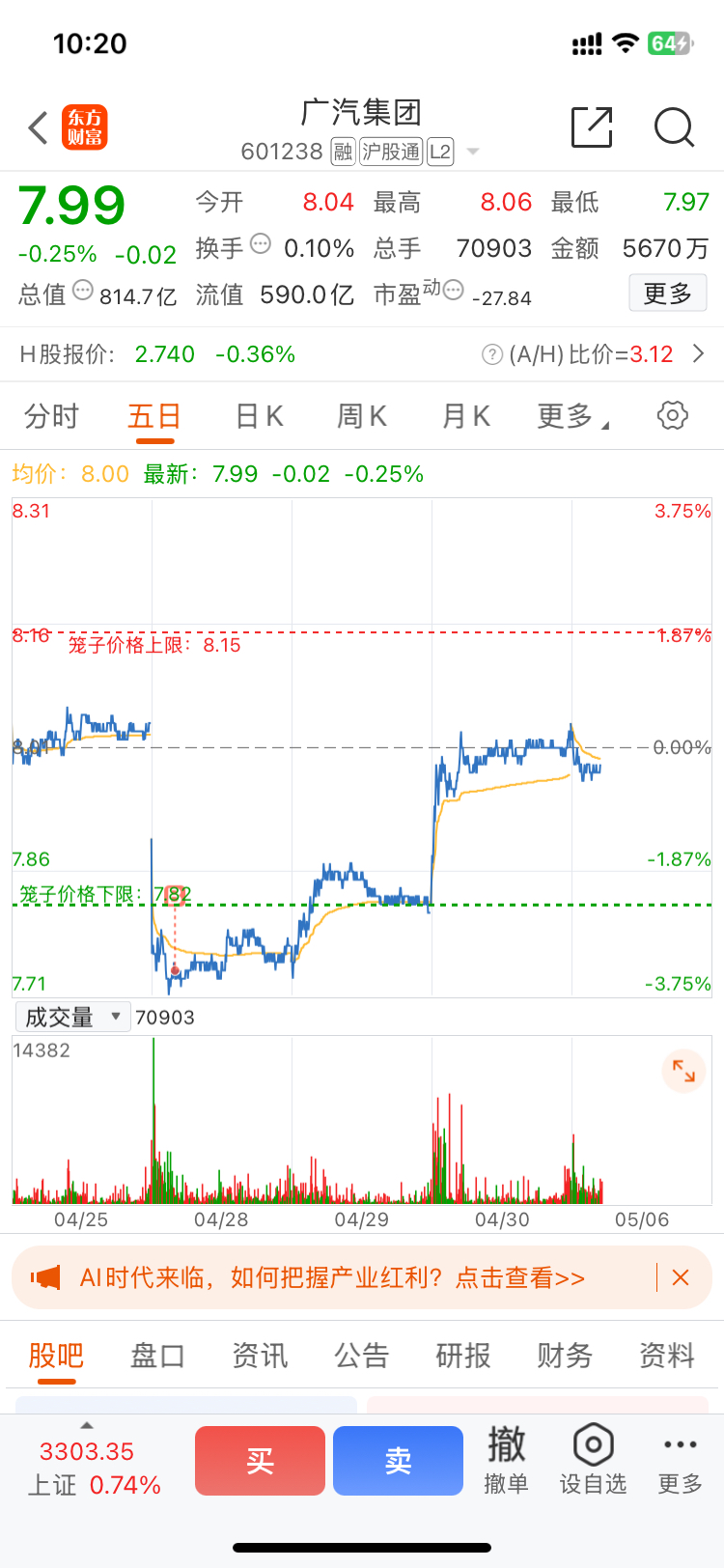$广汽集团(SH601238)$ 图形已经摆好!继续破7.71还是冲8.31看你的格局!手中有股不怕你涨,有钱不怕你跌!好好一家企业被你们玩坏了!我等是长期的价值投资者,不是你的对手盘!