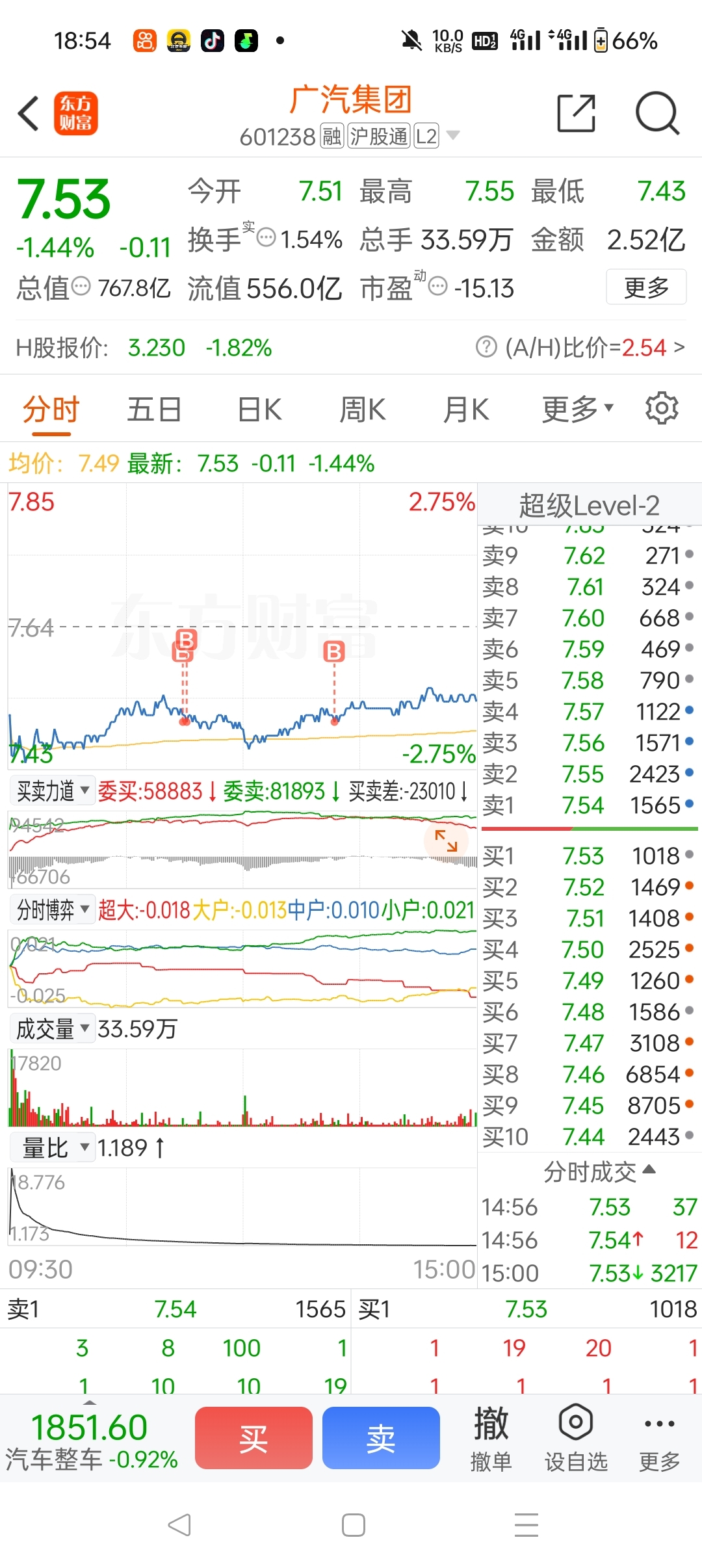 $广汽集团(SH601238)$ 尽力了 兄弟们。差点砸破7.40