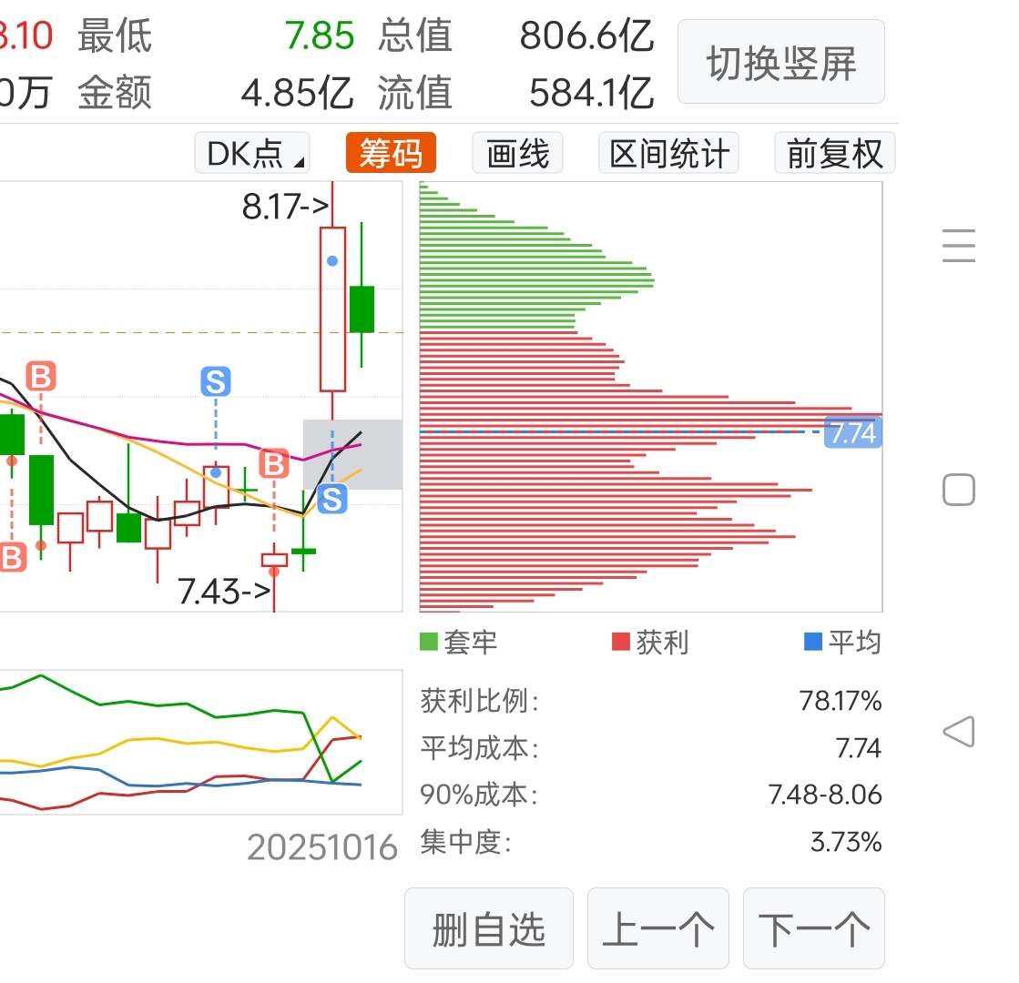 筹码集中度3.74,下午不V上去短期就废了
