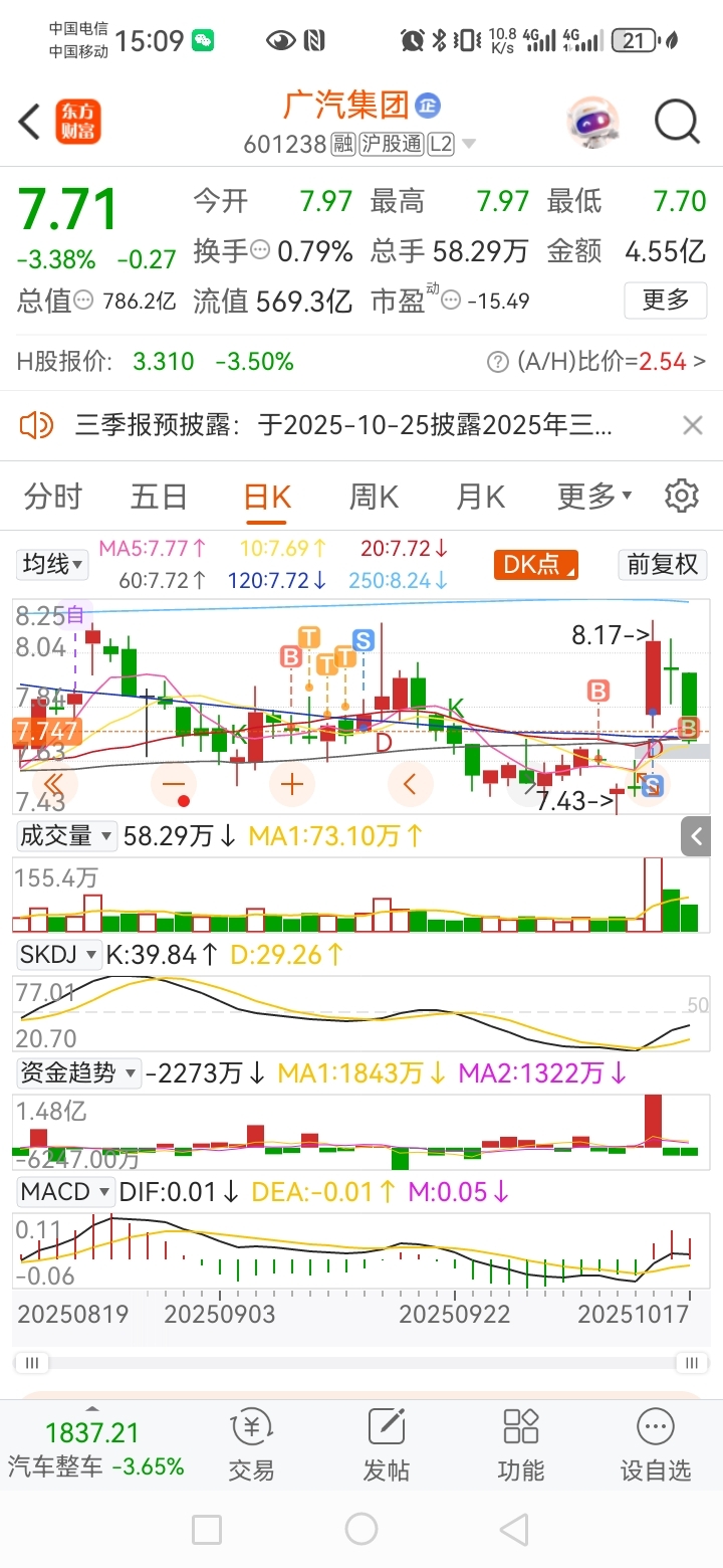 $广汽集团(SH601238)$ 前天卖早了,今天接回来一点。