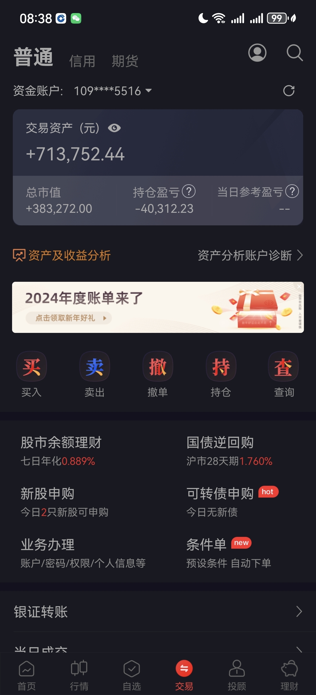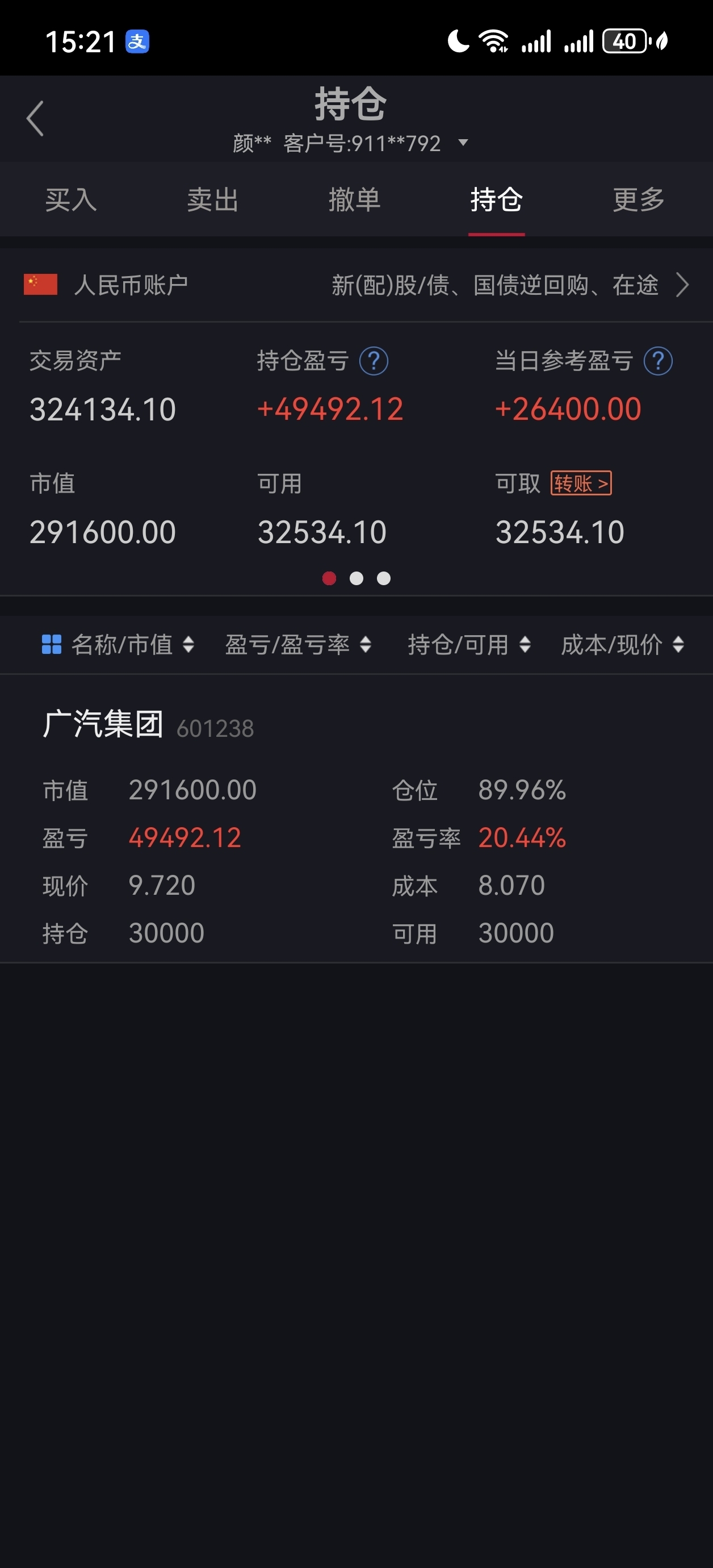 彻底卖完了,留几万块钱底仓,在这放着玩吧。钱都转到卡里和余额宝里面了,自驾游,喝