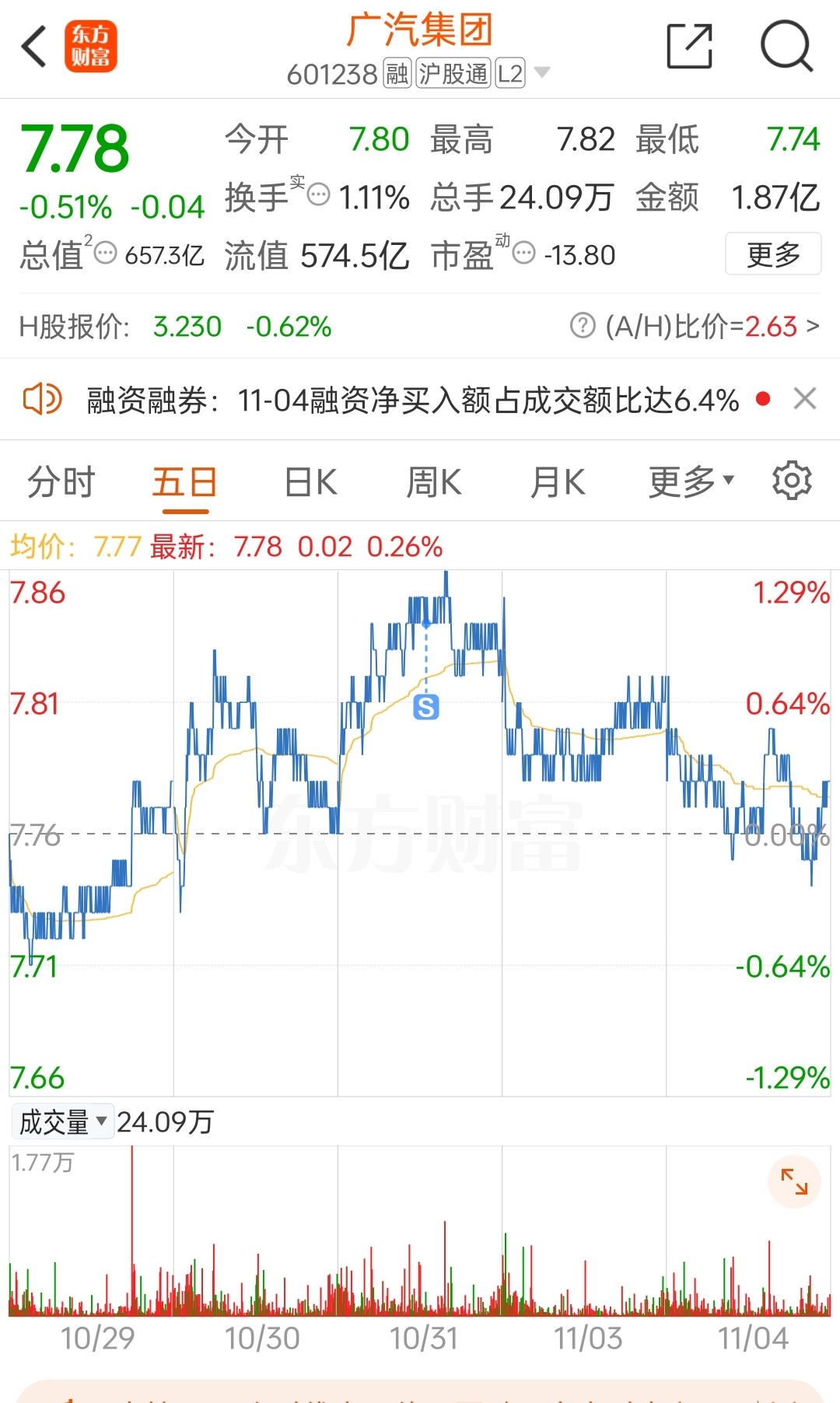 $广汽集团(SH601238)$ 7.70护盘以挂。