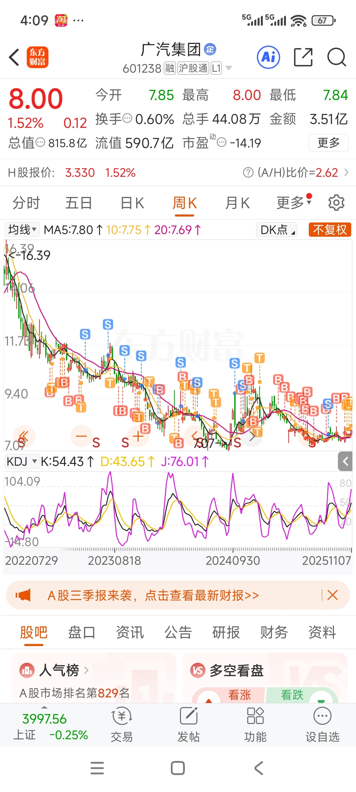 $广汽集团(SH601238)$ 看看被这公司套了多久了,成本是一点也没减下来,反而还高了点