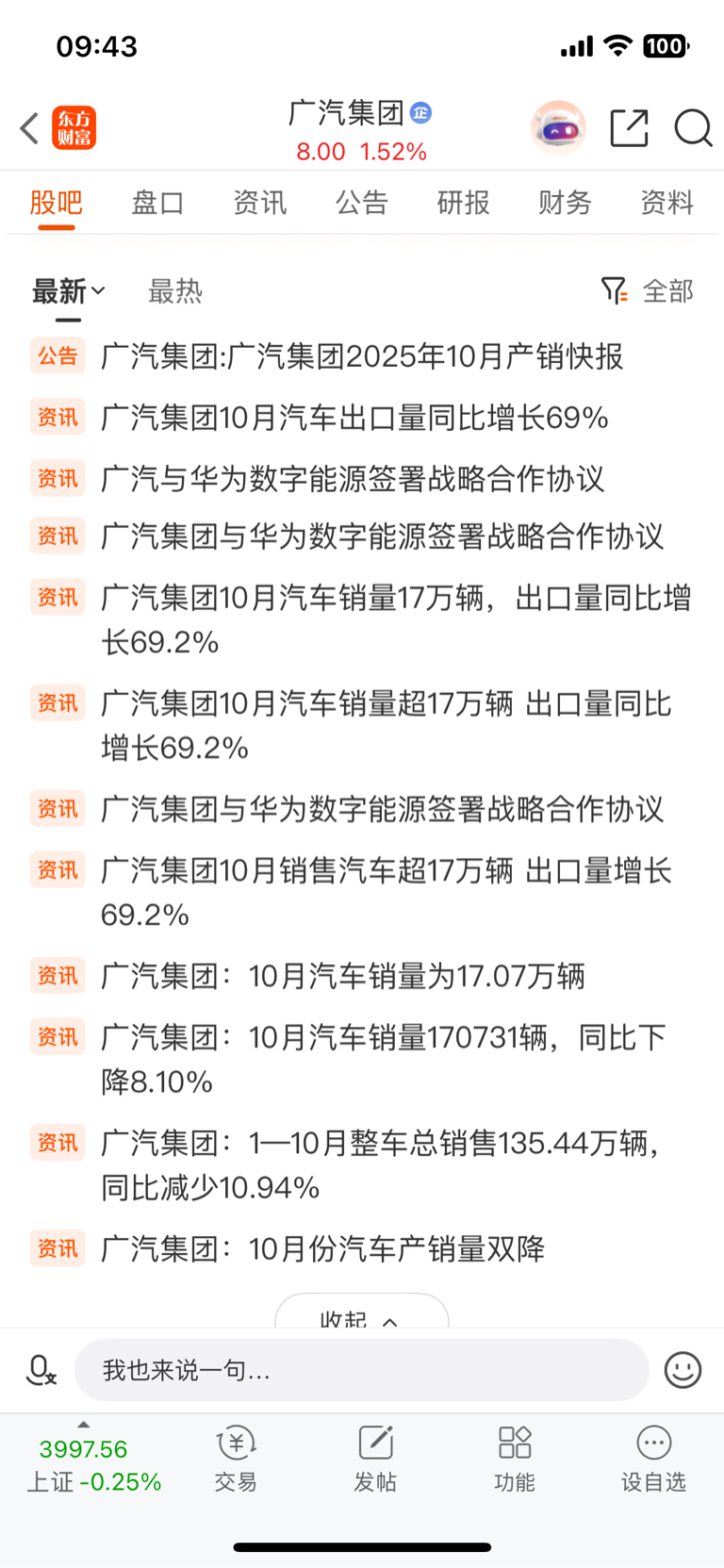 $广汽集团(SH601238)$ 你么的,一天发八百条,对得起你的股价吗?
