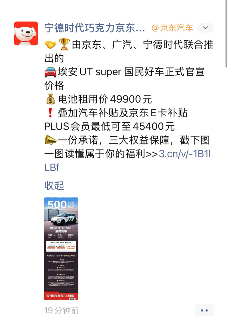 $广汽集团(SH601238)$ plus用户租车4.54万就可以租电池使用