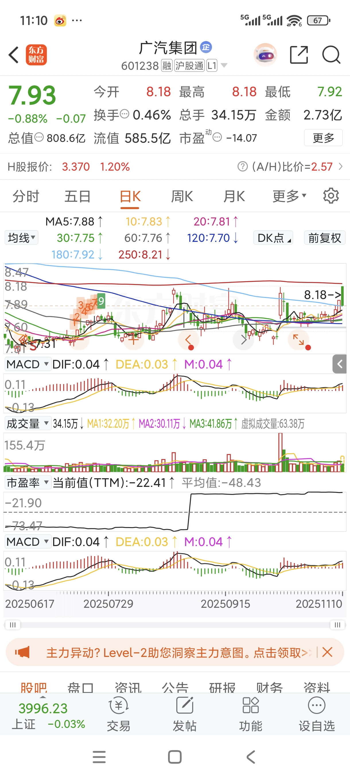$广汽集团(SH601238)$ 这根阴线至少周三才能修复