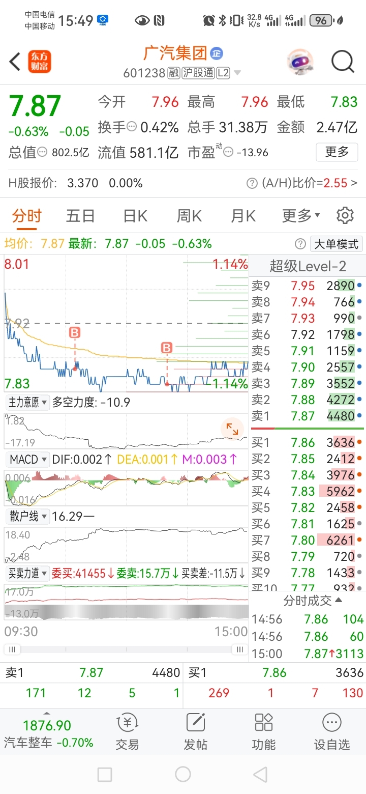 $广汽集团(SH601238)$ 加仓对冲今天账户盈利。