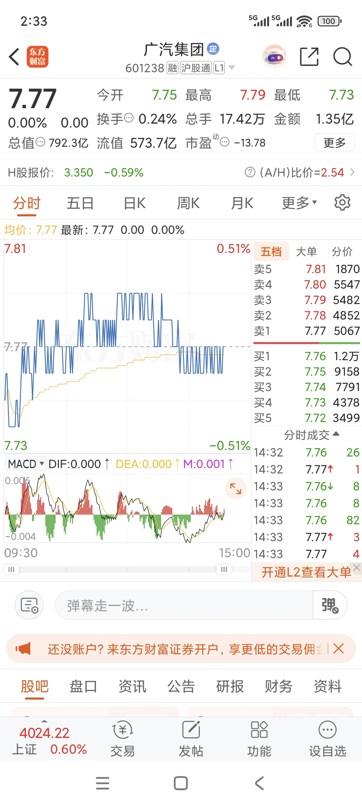 $广汽集团(SH601238)$ 苟东西指数涨你不拉,你在底下搞脱单看来还要跌,陪你