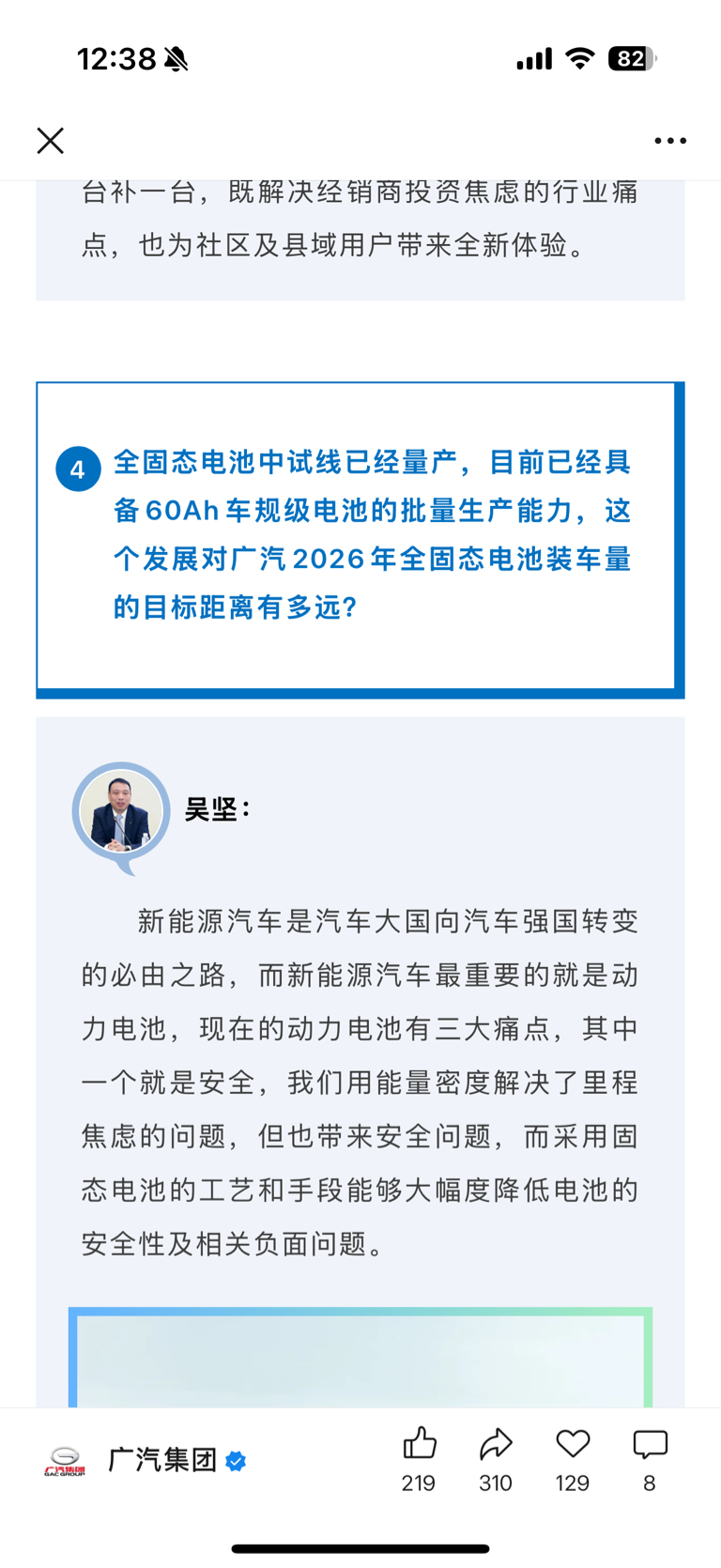 广汽吴总说广汽全固态电池就是开胃小菜,广汽还有好多黑科技没拿出来呢