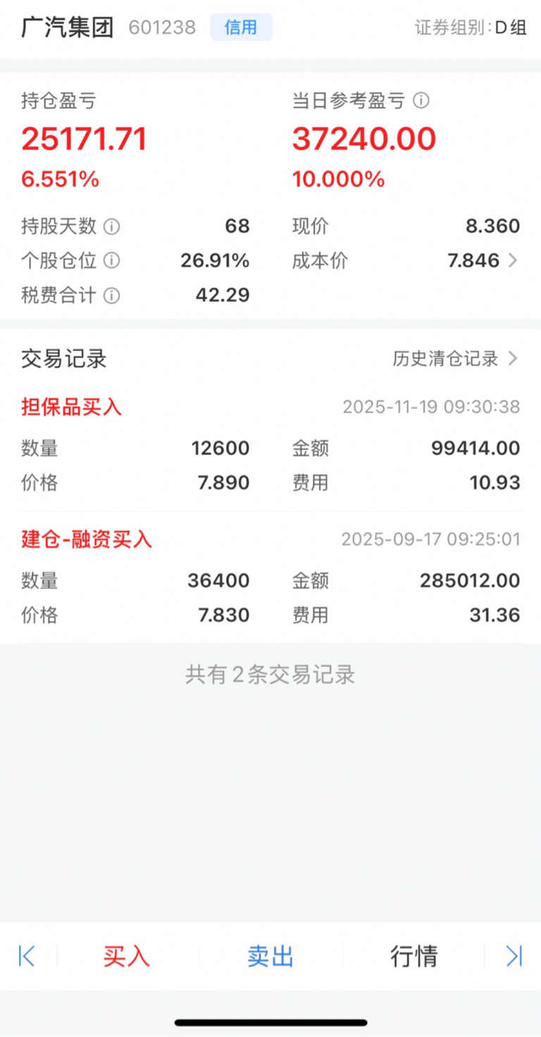 $广汽集团(SH601238)$ 星期四刚加了仓 加的不多 还是保守了点 想着快年底了