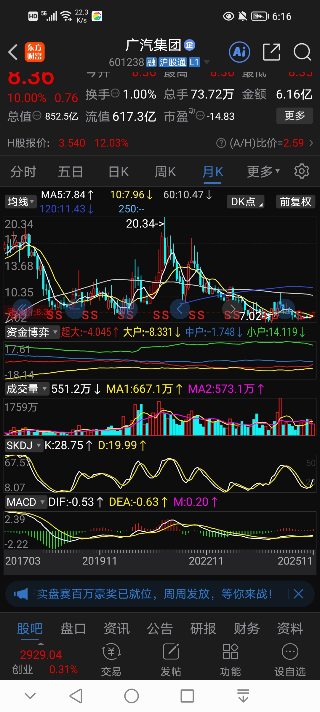 $广汽集团(SH601238)$ 底盘横盘震荡,上涨放量,回调缩量,固态电池技术研发利好,突然一字板涨停,