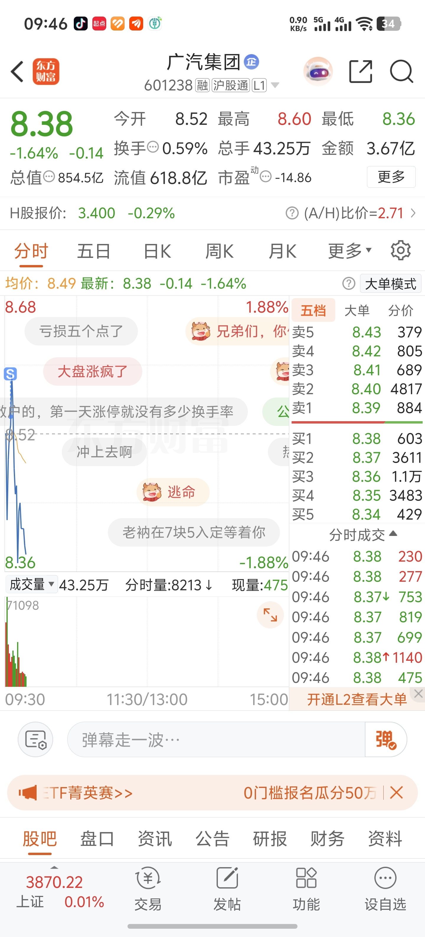 $广汽集团(SH601238)$ 昨天追高了,今天狗肉走了,感谢主力不杀之恩