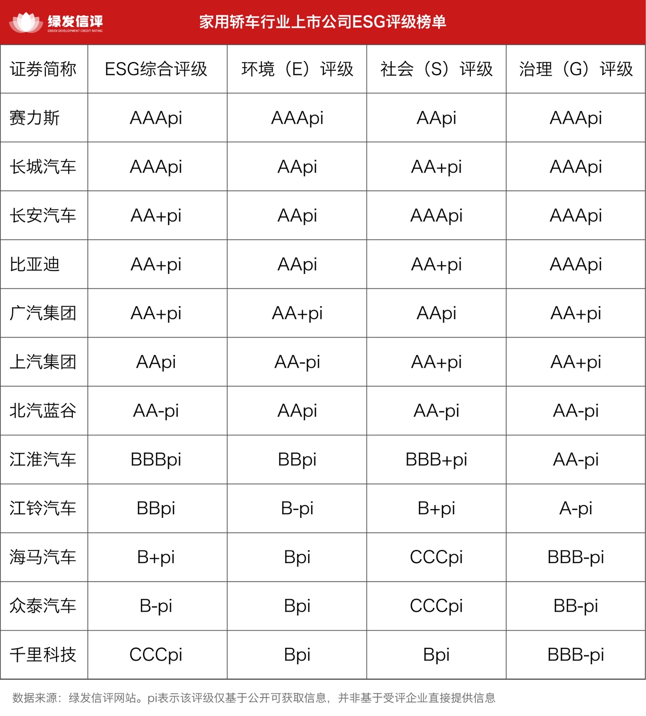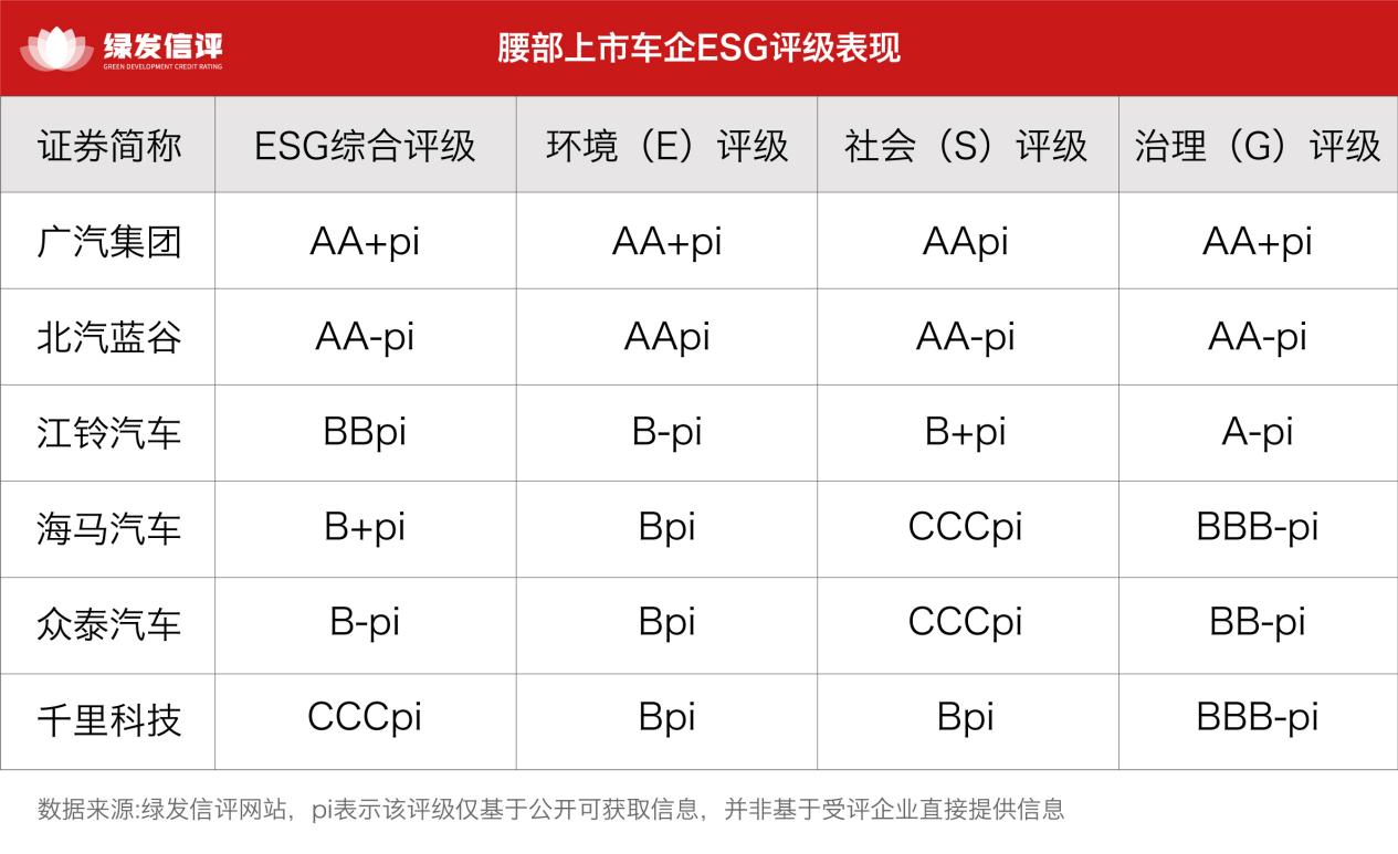 绿发信评发布腰部上市车企ESG主动评级结果: 广汽集团获AA+pi评级,其他车企较头部差距显著