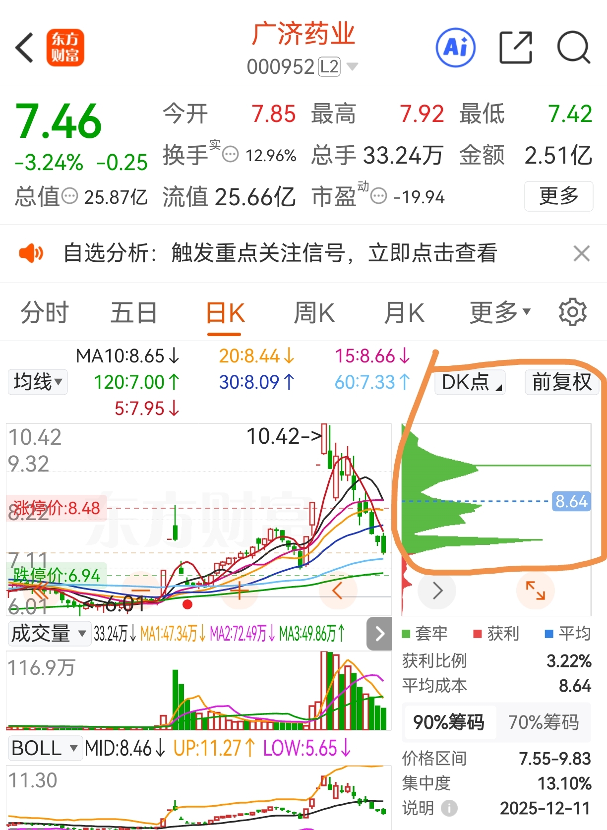 遇到这种图形和筹码,第一次反抽后两三天内无反弹,基本都是阴跌,高度警惕