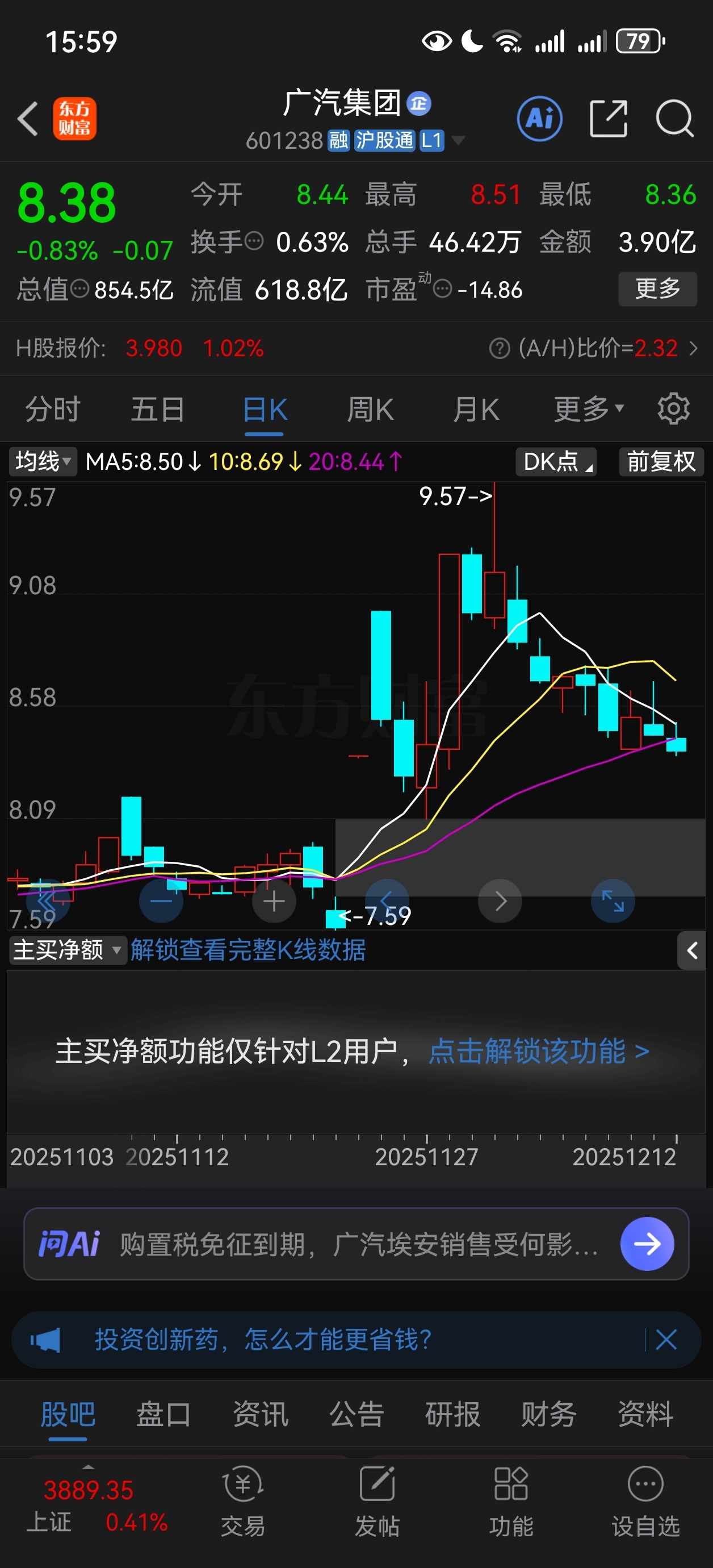 $广汽集团(SH601238)$ 最近这俩货的走势很像啊,先是一个涨停,然后再高开一下,接着就是毫无支撑的A杀了,西王A杀已经完成,但还是破位继续跌,广汽这次A杀完成是7.9,继续破位跌会到7.5。希望7.5能企稳,7.5不企稳,就要破7了。