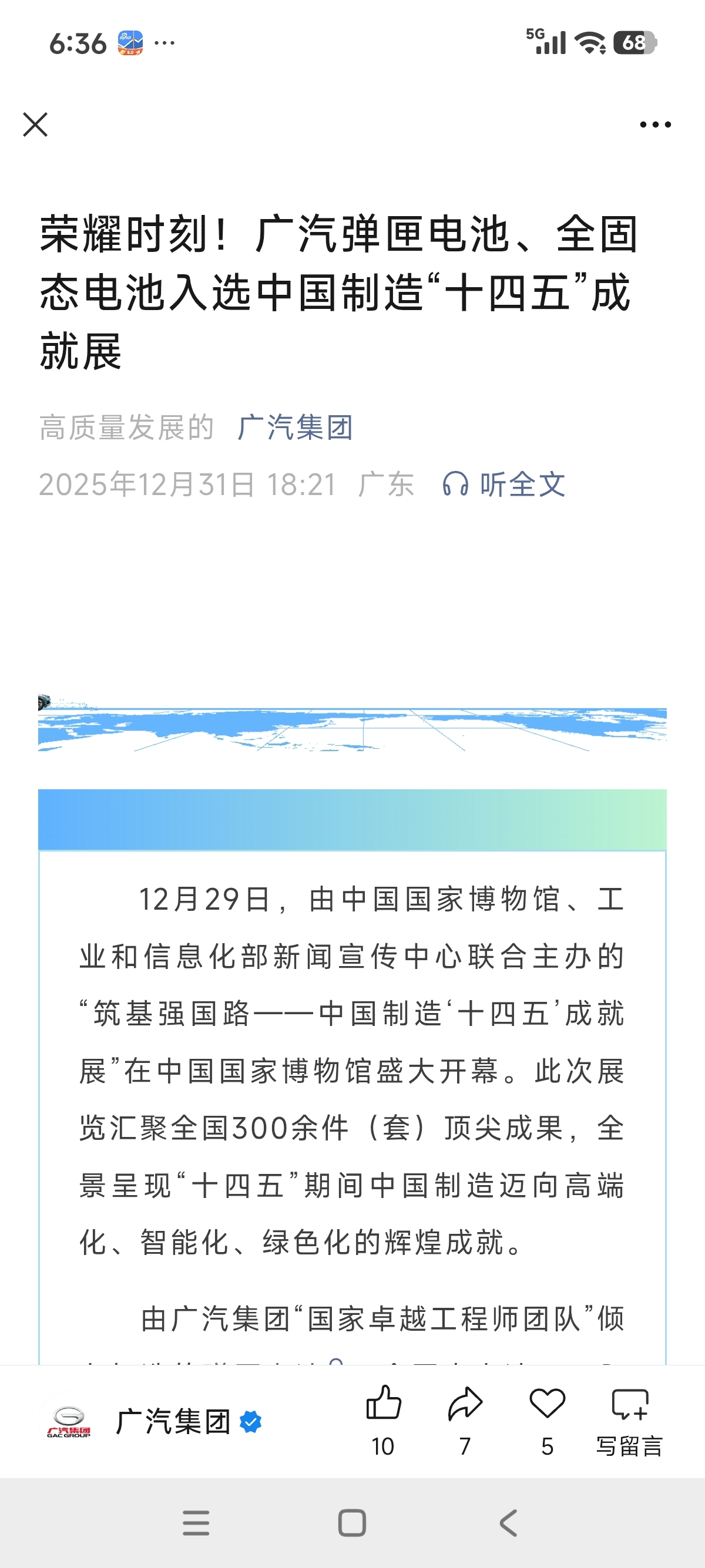 $广汽集团(SH601238)$ 固态电池参加十四五成就展的消息应该早点发出来呀