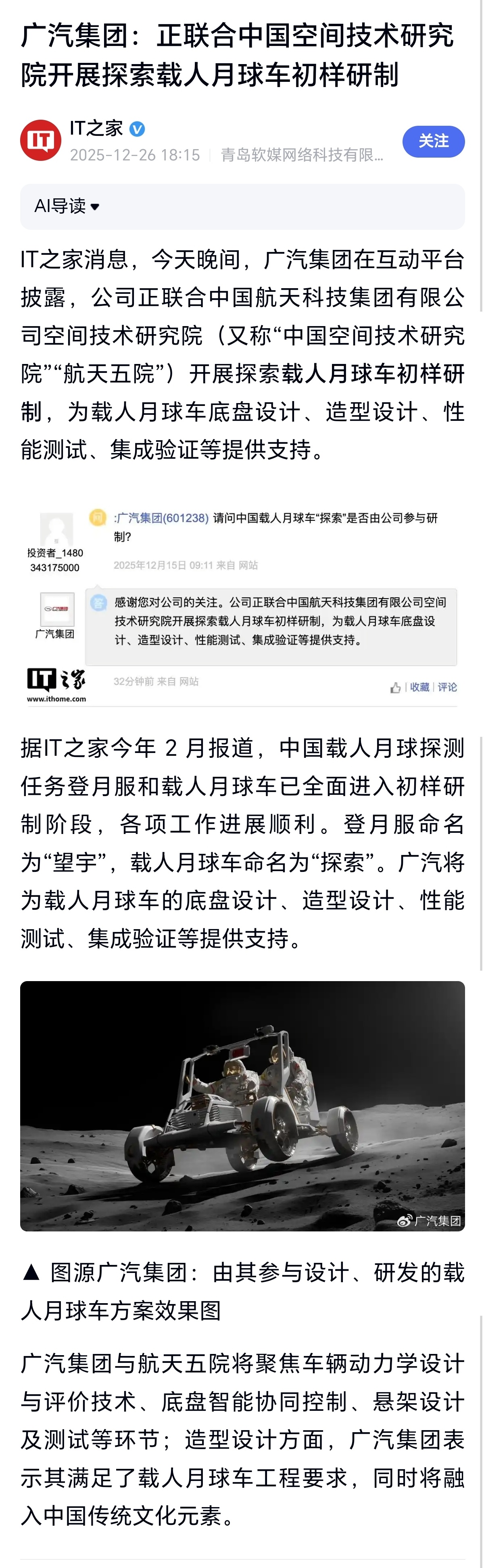 $广汽集团(SH601238)$ 问董秘:广汽的月球车研发进展情况