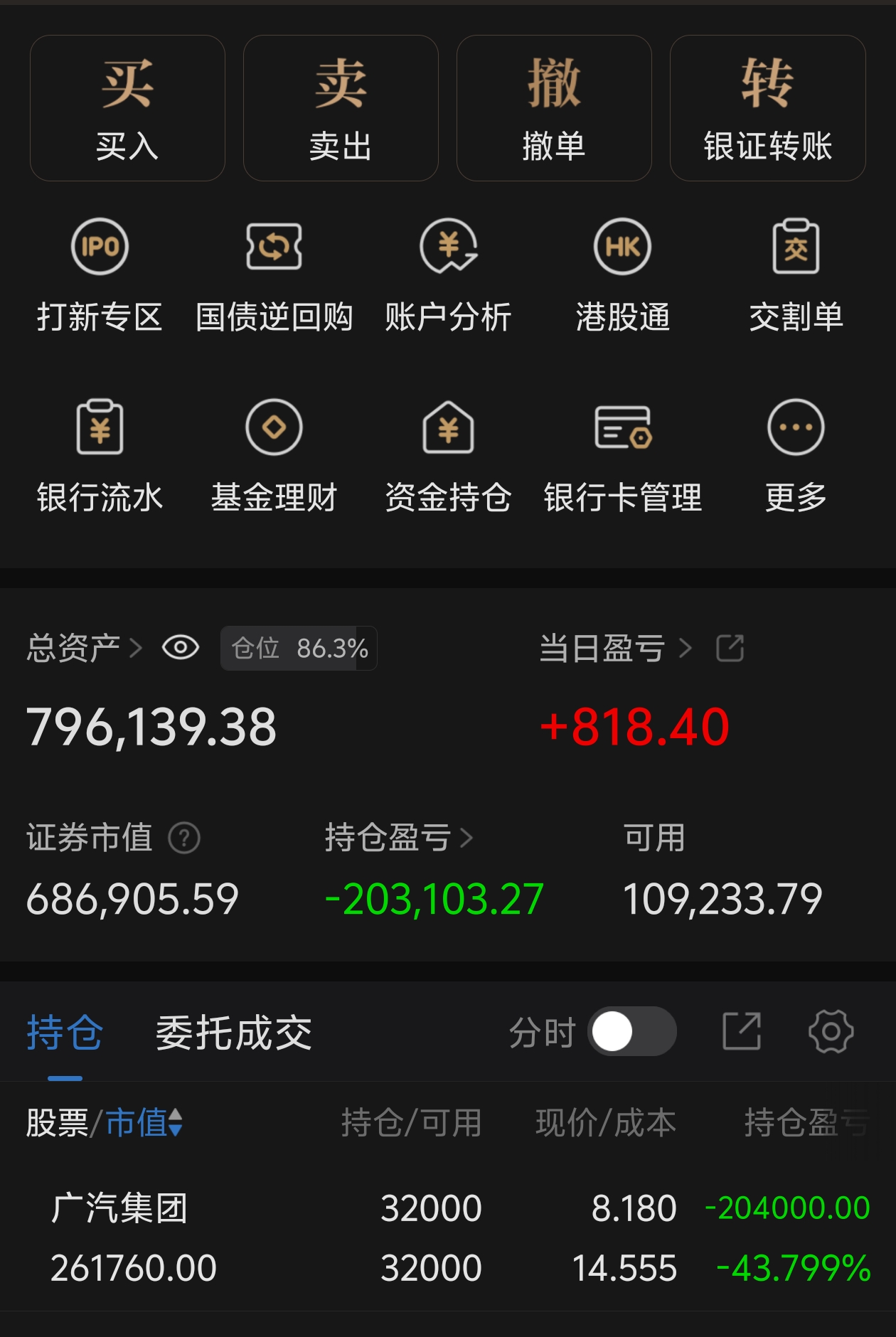 $广汽集团(SH601238)$ 清仓了上海石化,中海油服,加了两千股,慢慢做T,
