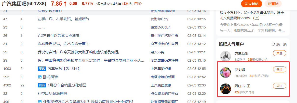 2025年度广汽最惨股东,贴吧人气用户能上榜么