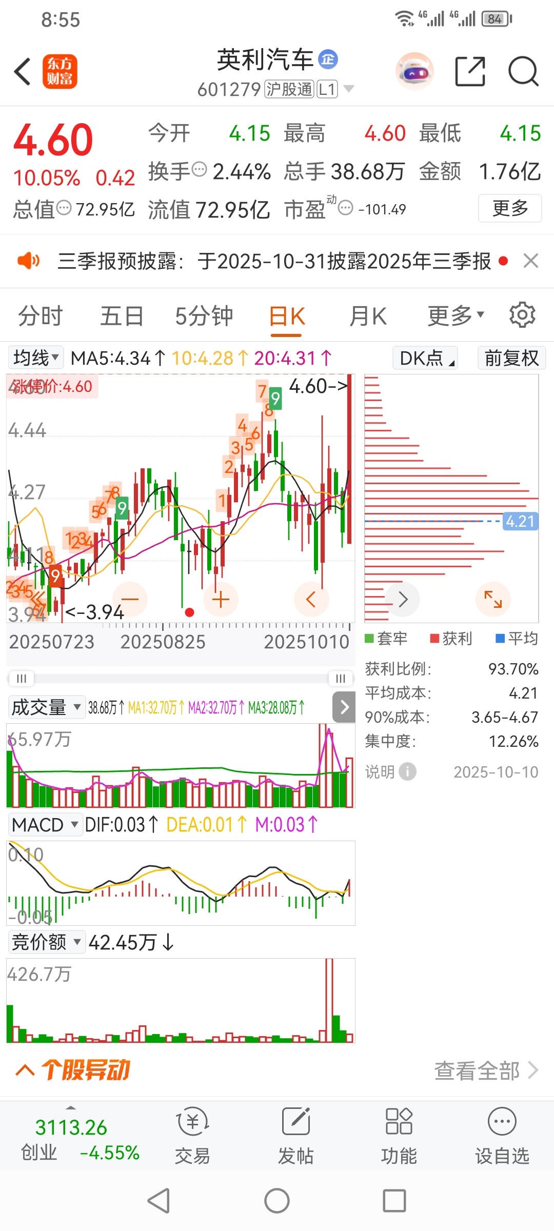 军哥:10月继续持有,参与汽车股票,英利汽车,渤海汽车