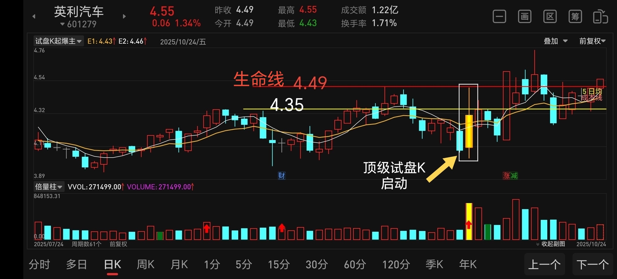 $英利汽车(SH601279)$ 今日已突破4.49关键位,准备迎接拉升行情的展开