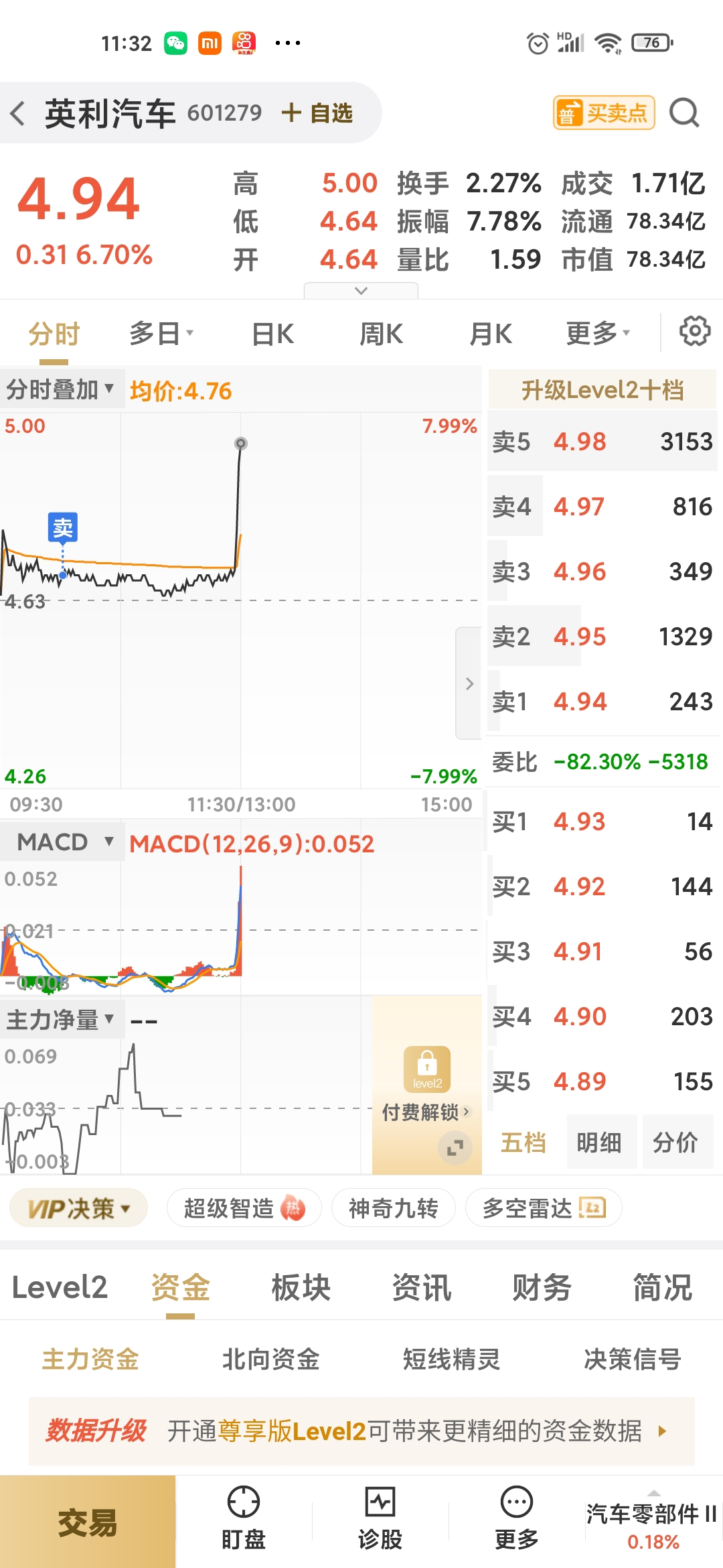 $英利汽车(SH601279)$ 一卖就涨,拍断大腿了,少赚5干大洋