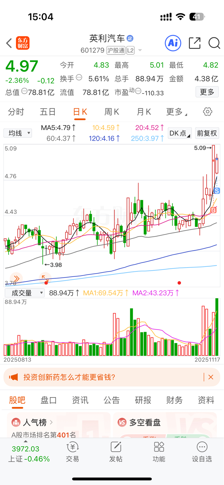 $英利汽车(SH601279)$ 一点溢价都不给,好好好