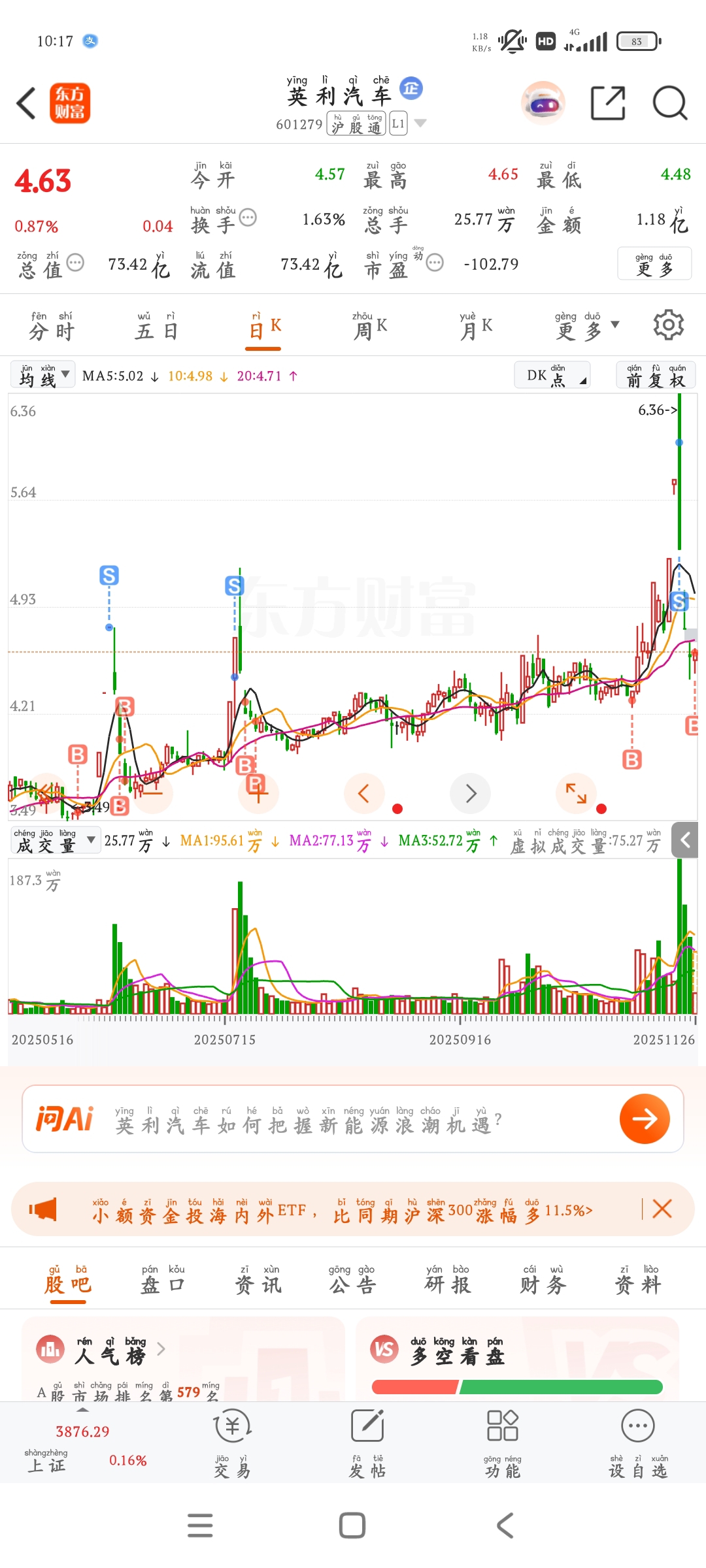 $英利汽车(SH601279)$ 家人们我又回来了,多谢大家支持,感谢。
