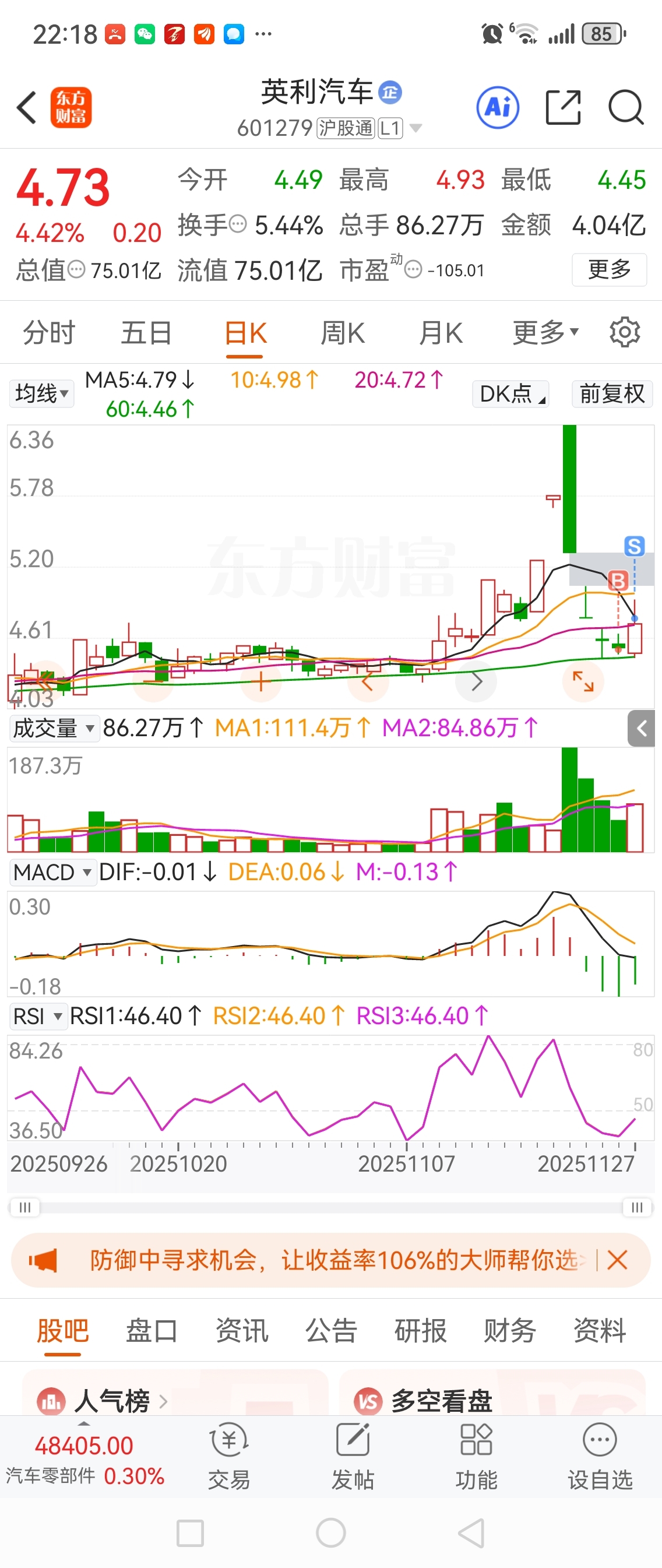 $英利汽车(SH601279)$ 昨天买今天卖真完美