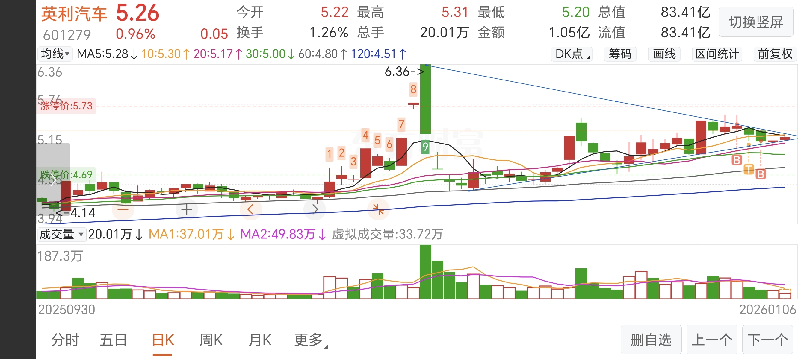 $英利汽车(SH601279)$ 下午能不能向上突破