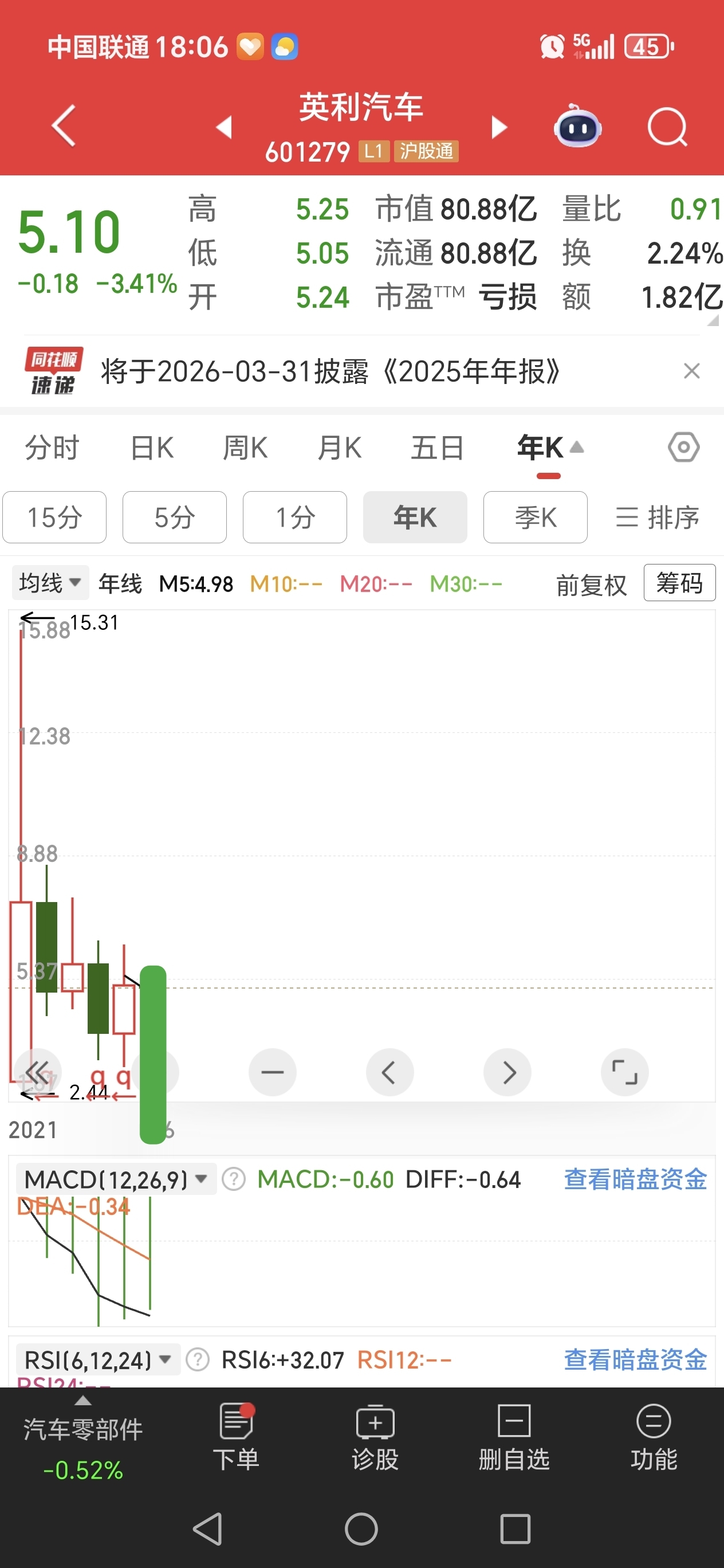 $英利汽车(SH601279)$ 这走势比较符合年线图,今年绿柱子
