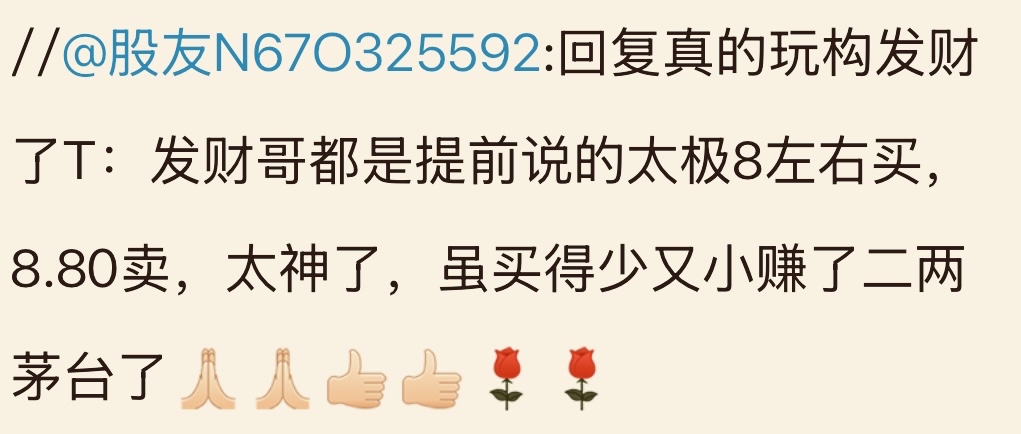 这个兄弟又在太极赚了10%左右,在发财的提醒下!更多的兄弟在中科三环会赚得盆满钵