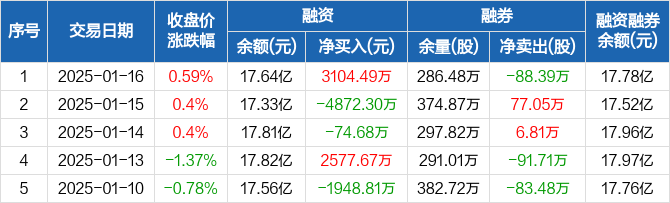 农业银行:融资净买入3104.49万元,融资余额17.64亿元(01-16)