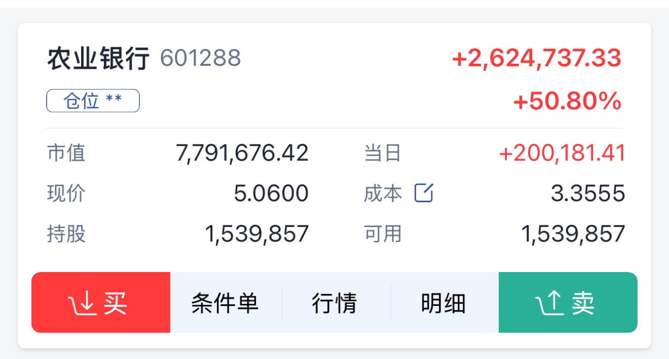 $农业银行(SH601288)$ 哇塞!今天发生了什么!疯了吗!浮盈这么多!早知道做几笔!新包包就有啦!