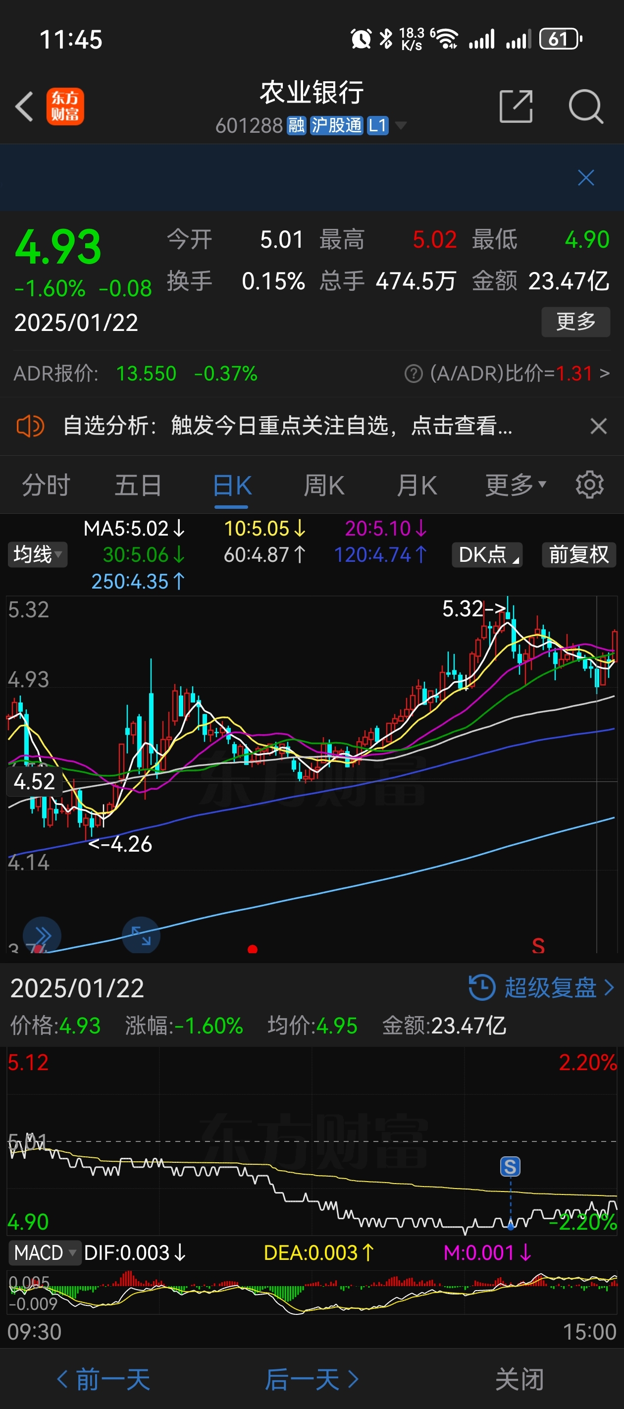 上周最低点卖的农业银行,看这架势这是又要往新高去了,还好卖掉之后买了瑞芯微,不然
