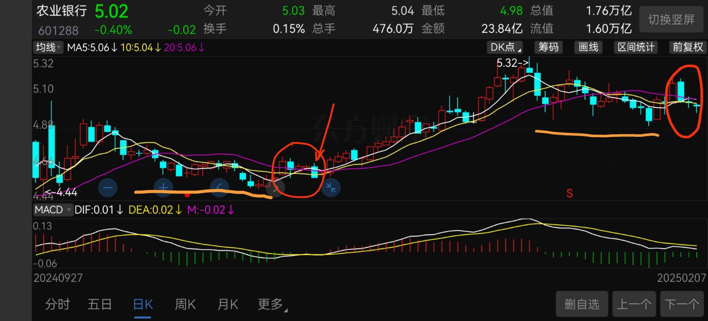 估计下周一农行还要跌六分钱。